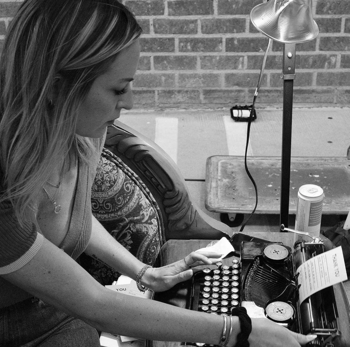 She uses a collection of vintage typewriters from all different time periods and different stationary depending on the event. For example, at weddings she has used stationary with the names of the newlywed couple on it and the date so it can always be remembered. She’s traveled out of the state and out of the country for different events, typewriter in tow.